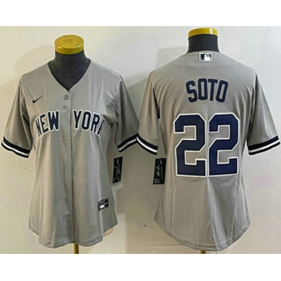 Women's New York Yankees #22 Juan Soto Grey Cool Base Stitched Baseball Jersey