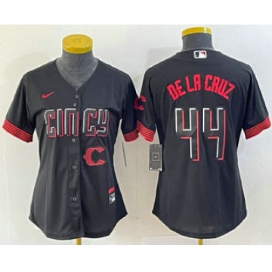 >Women's Nike Cincinnati Reds #44 Elly De La Cruz Black 2023 City Connect Cool Base Stitched Baseball Jersey