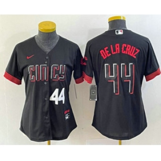 >Women's Nike Cincinnati Reds #44 Elly De La Cruz Number Black 2023 City Connect Cool Base Stitched Baseball Jersey2