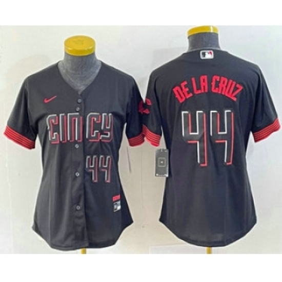 Women's Nike Cincinnati Reds #44 Elly De La Cruz Number Black 2023 City Connect Cool Base Stitched Baseball Jersey4