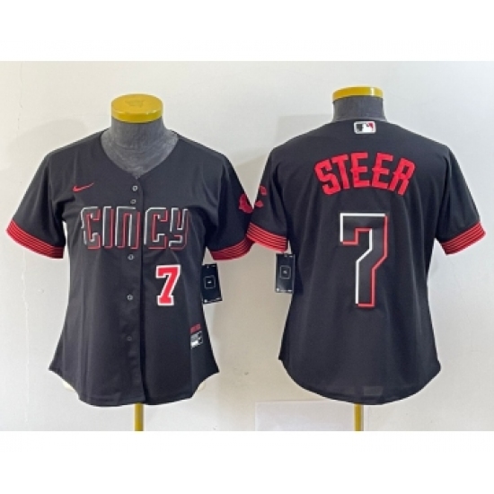 Women's Nike Cincinnati Reds #7 Spencer Steer Numer Black 2023 City Connect Cool Base Stitched Baseball Jersey