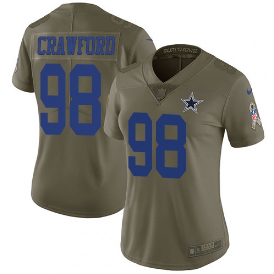 Women's Nike Dallas Cowboys #98 Tyrone Crawford Limited Olive 2017 Salute to Service NFL Jersey