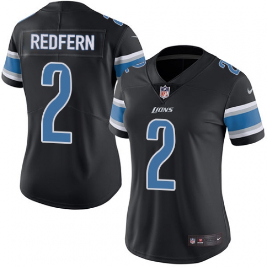 Home>NFL>Detroit Lions>Kasey Redfern>Women's Nike Detroit Lions #2 Kasey Redfern Limited Black Rush Vapor Untouchable NFL Jersey