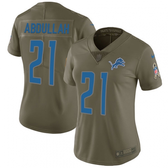 Home>NFL>Detroit Lions>Ameer Abdullah>Women's Nike Detroit Lions #21 Ameer Abdullah Limited Olive 2017 Salute to Service NFL Jersey