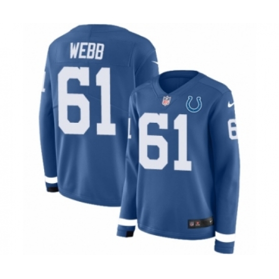Women's Nike Indianapolis Colts #61 J'Marcus Webb Limited Blue Therma Long Sleeve NFL Jersey
