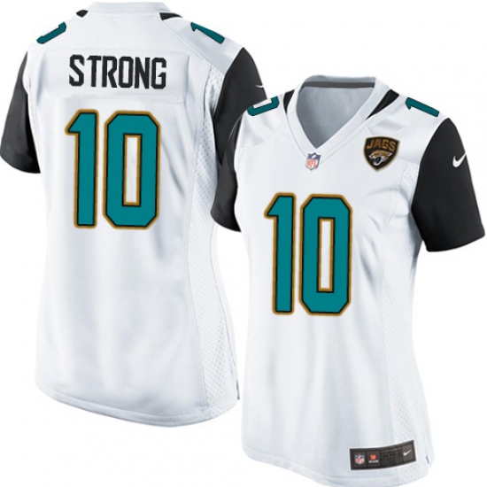 Home>NFL>Jacksonville Jaguars>Jaelen Strong>Women's Nike Jacksonville Jaguars #10 Jaelen Strong Game White NFL Jersey