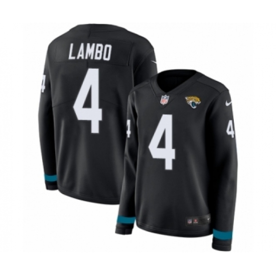 >Women's Nike Jacksonville Jaguars #4 Josh Lambo Limited Black Therma Long Sleeve NFL Jersey