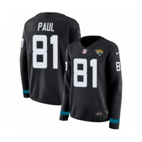 >Women's Nike Jacksonville Jaguars #81 Niles Paul Limited Black Therma Long Sleeve NFL Jersey