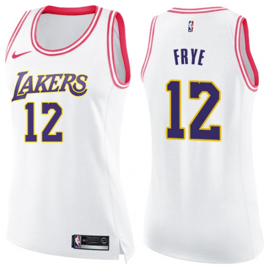 Home>NBA>Los Angeles Lakers>Channing Frye>Women's Nike Los Angeles Lakers #12 Channing Frye Swingman White/Pink Fashion NBA Jersey