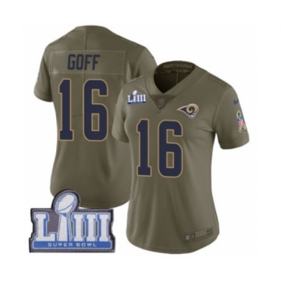 >Women's Nike Los Angeles Rams #16 Jared Goff Limited Olive 2017 Salute to Service Super Bowl LIII Bound NFL Jersey