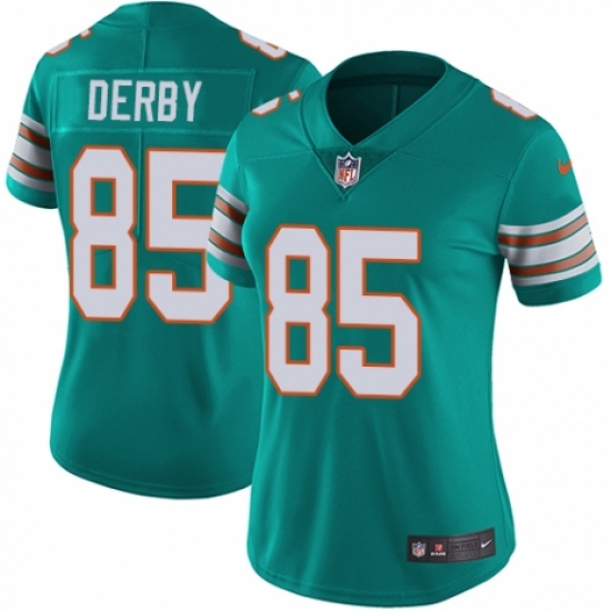 >Women's Nike Miami Dolphins #85 A.J. Derby Aqua Green Alternate Vapor Untouchable Elite Player NFL Jersey