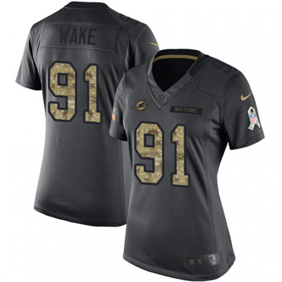 Women's Nike Miami Dolphins #91 Cameron Wake Limited Black 2016 Salute to Service NFL Jersey