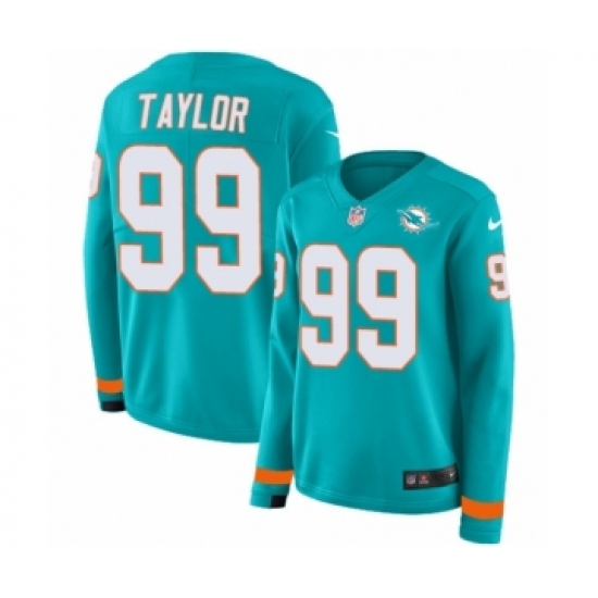 Women's Nike Miami Dolphins #99 Jason Taylor Limited Aqua Therma Long Sleeve NFL Jersey