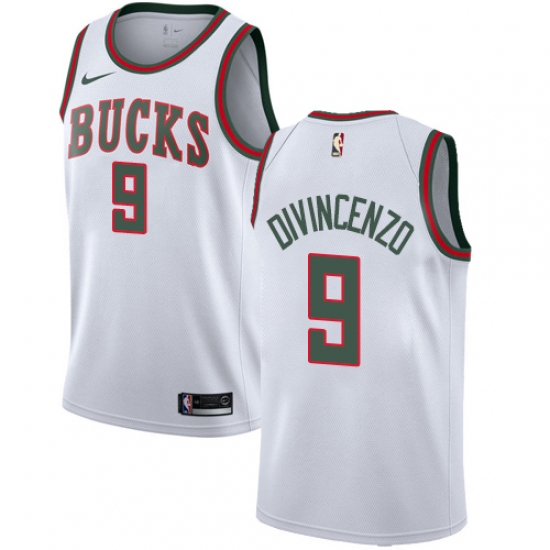 >Women's Nike Milwaukee Bucks #9 Donte DiVincenzo Swingman White Fashion Hardwood Classics NBA Jersey