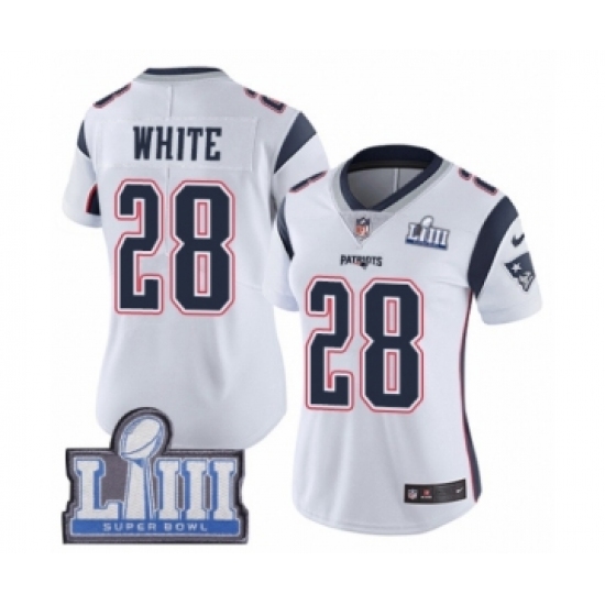 >Women's Nike New England Patriots #28 James White Vapor Untouchable Limited Player Super Bowl LIII Bound NFL Jersey