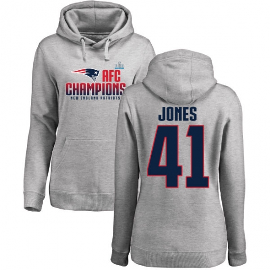Women's Nike New England Patriots #41 Cyrus Jones Heather Gray 2017 AFC Champions Pullover Hoodie