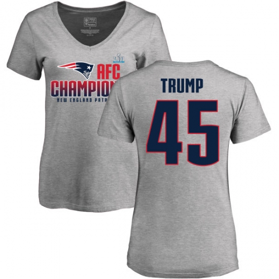 Women's Nike New England Patriots #45 Donald Trump Heather Gray 2017 AFC Champions V-Neck T-Shirt
