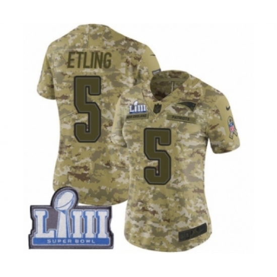 Women's Nike New England Patriots #5 Danny Etling Limited Camo 2018 Salute to Service Super Bowl LIII Bound NFL Jersey