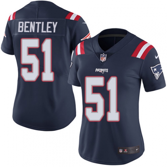 >Women's Nike New England Patriots #51 Ja'Whaun Bentley Limited Navy Blue Rush Vapor Untouchable NFL Jersey