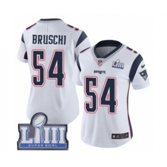 Women's Nike New England Patriots #54 Tedy Bruschi White Vapor Untouchable Limited Player Super Bowl LIII Bound NFL Jersey