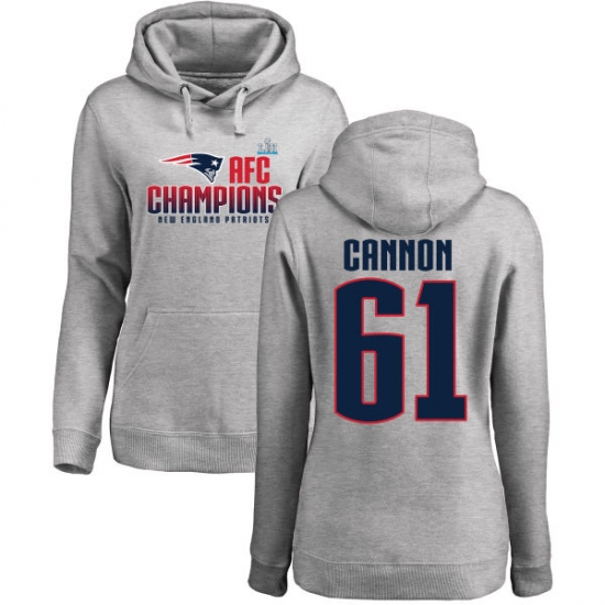 >Women's Nike New England Patriots #61 Marcus Cannon Heather Gray 2017 AFC Champions Pullover Hoodie