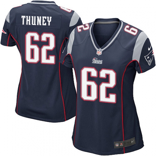Home>NFL>New England Patriots>Joe Thuney>Women's Nike New England Patriots #62 Joe Thuney Game Navy Blue Team Color NFL Jersey