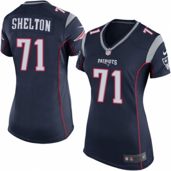 >Women's Nike New England Patriots #71 Danny Shelton Game Navy Blue Team Color NFL Jersey