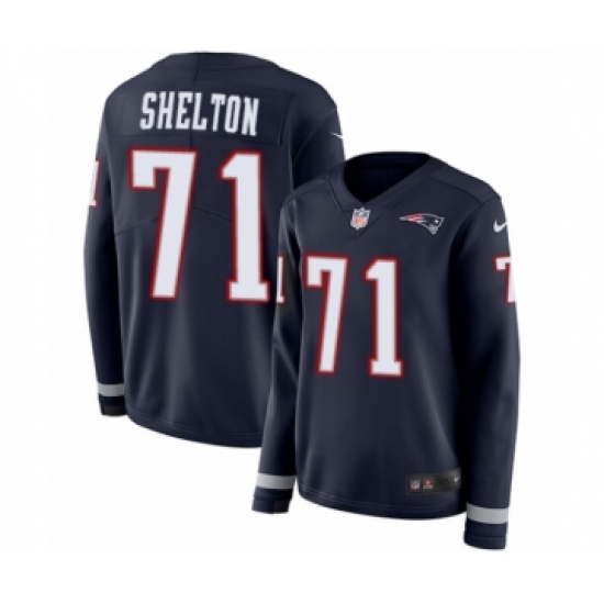 Women's Nike New England Patriots #71 Danny Shelton Limited Navy Blue Therma Long Sleeve NFL Jersey