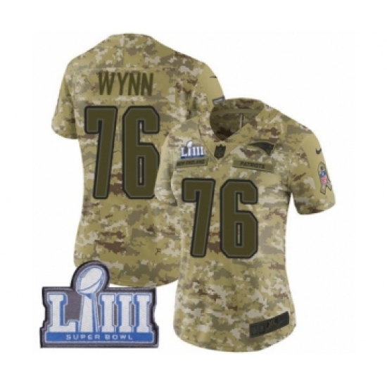 >Women's Nike New England Patriots #76 Isaiah Wynn Limited Camo 2018 Salute to Service Super Bowl LIII Bound NFL Jersey