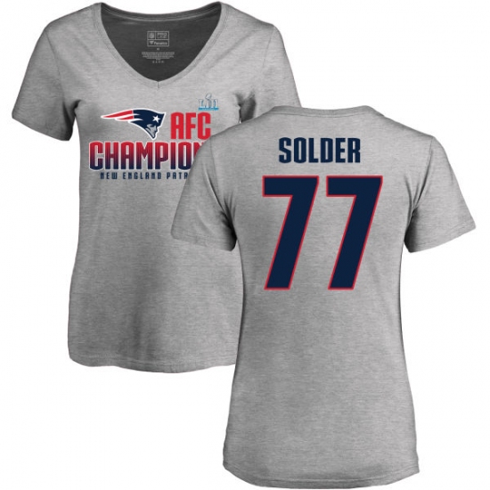 >Women's Nike New England Patriots #77 Nate Solder Heather Gray 2017 AFC Champions V-Neck T-Shirt