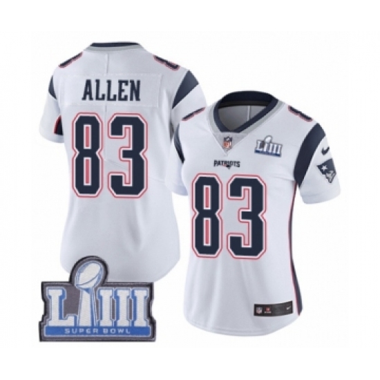 >Women's Nike New England Patriots #83 Dwayne Allen White Vapor Untouchable Limited Player Super Bowl LIII Bound NFL Jersey