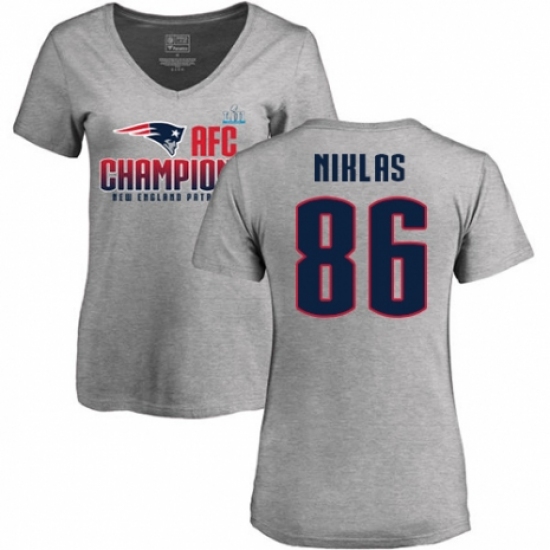 >Women's Nike New England Patriots #86 Troy Niklas Heather Gray 2017 AFC Champions V-Neck T-Shirt