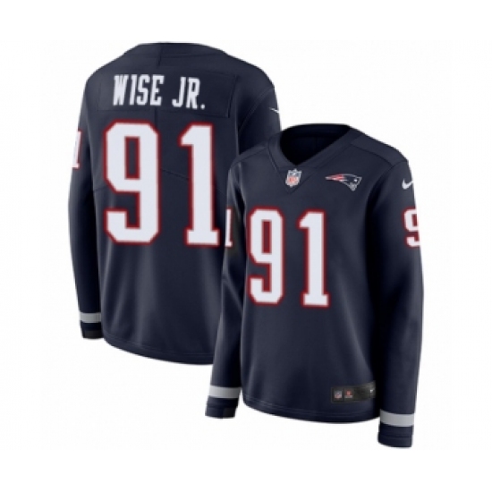 Women's Nike New England Patriots #91 Deatrich Wise Jr Limited Navy Blue Therma Long Sleeve NFL Jersey