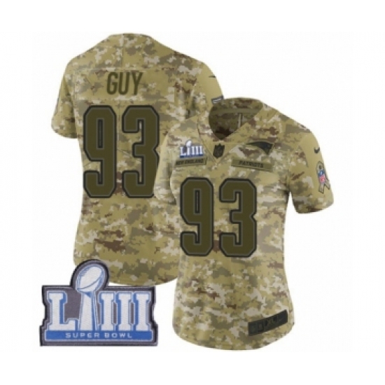 >Women's Nike New England Patriots #93 Lawrence Guy Limited Camo 2018 Salute to Service Super Bowl LIII Bound NFL Jersey
