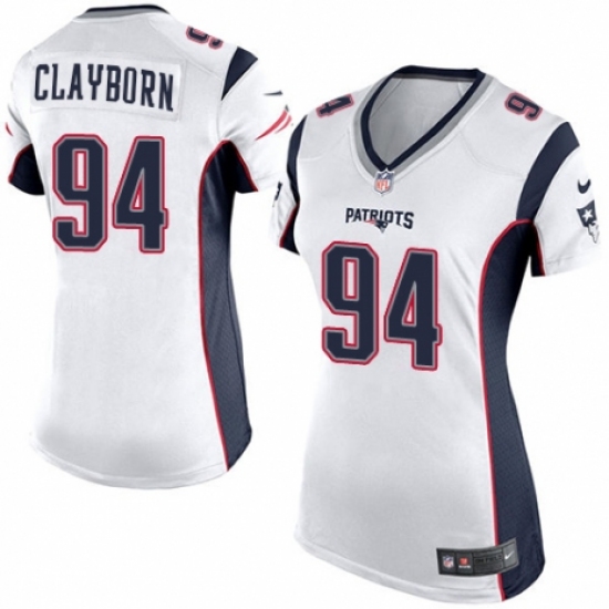 Women's Nike New England Patriots #94 Adrian Clayborn Game White NFL Jersey