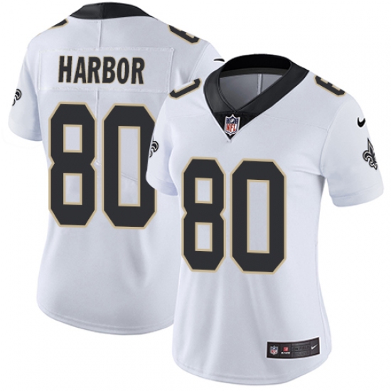 Home>NFL>New Orleans Saints>Clay Harbor>Women's Nike New Orleans Saints #80 Clay Harbor White Vapor Untouchable Limited Player NFL Jersey
