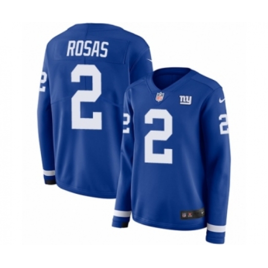 >Women's Nike New York Giants #2 Aldrick Rosas Limited Royal Blue Therma Long Sleeve NFL Jersey