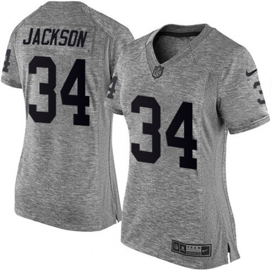 Home>NFL>Oakland Raiders>Bo Jackson>Women's Nike Oakland Raiders #34 Bo Jackson Limited Gray Gridiron NFL Jersey