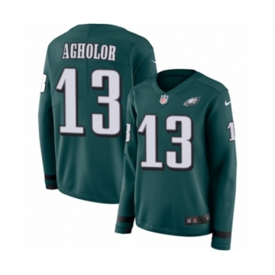 >Women's Nike Philadelphia Eagles #13 Nelson Agholor Limited Green Therma Long Sleeve NFL Jersey