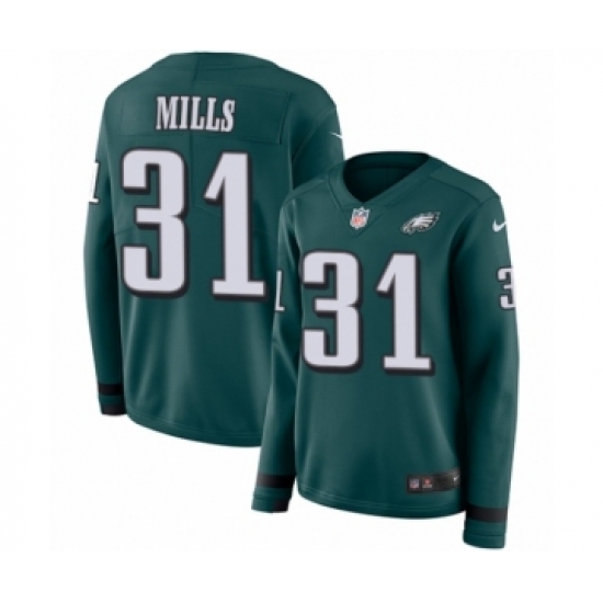 >Women's Nike Philadelphia Eagles #31 Jalen Mills Limited Green Therma Long Sleeve NFL Jersey
