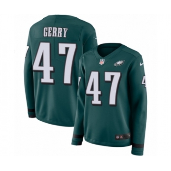 >Women's Nike Philadelphia Eagles #47 Nate Gerry Limited Green Therma Long Sleeve NFL Jersey