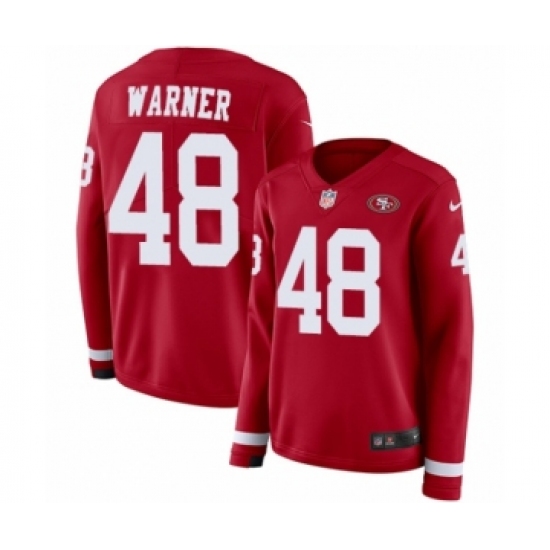 >Women's Nike San Francisco 49ers #48 Fred Warner Limited Red Therma Long Sleeve NFL Jersey