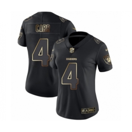 >Women's Oakland Raiders #4 Derek Carr Black Gold Vapor Untouchable Limited Player 100th Season Football Jersey
