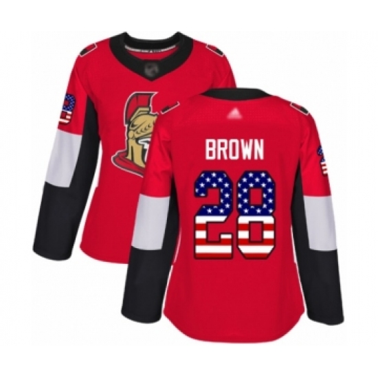 Women's Ottawa Senators #28 Connor Brown Authentic Red USA Flag Fashion Hockey Jersey