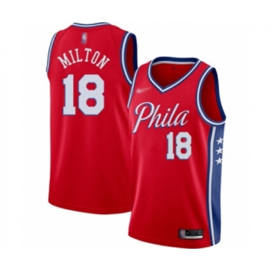 Men's Philadelphia 76ers #18 Shake Milton Authentic Red Basketball Jersey Statement Edition