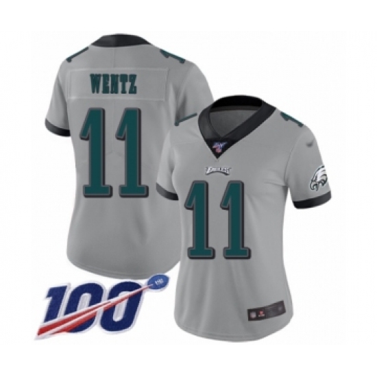 Women's Philadelphia Eagles #11 Carson Wentz Limited Silver Inverted Legend 100th Season Football Jersey