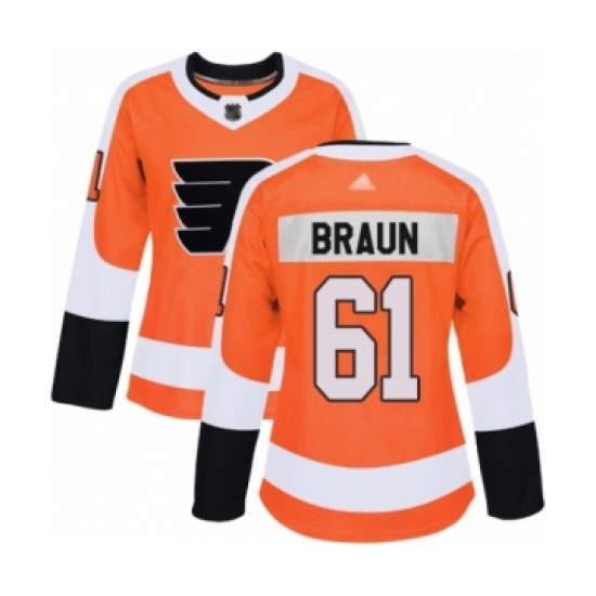 Women's Philadelphia Flyers #61 Justin Braun Authentic Orange Home Hockey Jersey