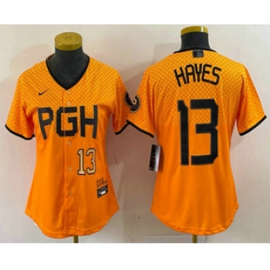Women's Pittsburgh Pirates #13 KeBryan Hayes Number Yellow 2023 City Connect Stitched Jersey