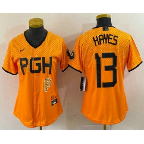 Women's Pittsburgh Pirates #13 KeBryan Hayes Number Yellow 2023 City Connect Stitched Jersey1