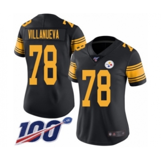 Women's Pittsburgh Steelers #78 Alejandro Villanueva Limited Black Rush Vapor Untouchable 100th Season Football Jersey